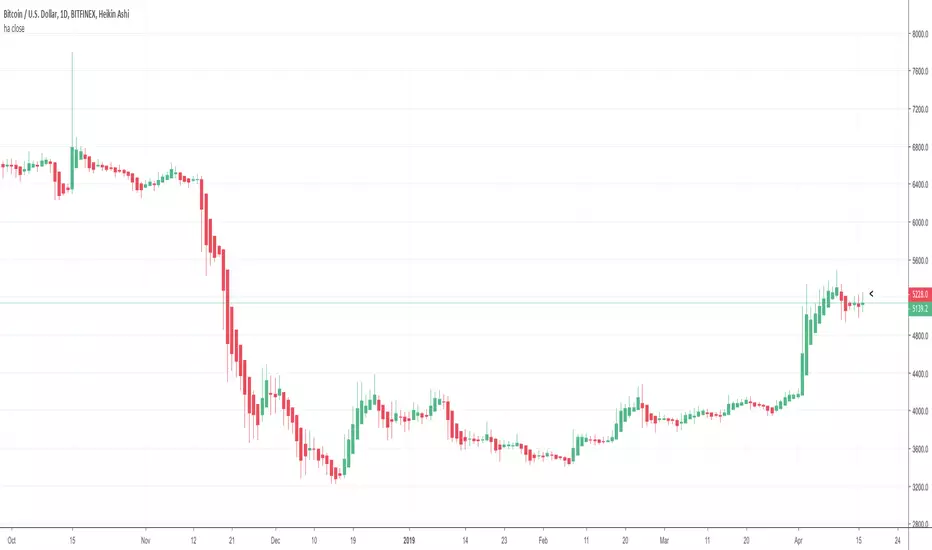 This simple script adds a small marker on the last bar of a Heikin Ashi chart to indicate where the current market close price is, which can be hard to see on this style of candle.