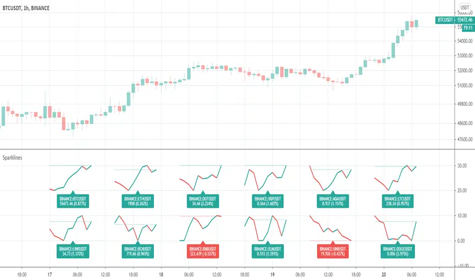 A sparkline is a very small line chart, typically drawn without axes or coordinates (the presented implementation has coordinates). It presents the general shape of the variation (typically over time) in some measurement, in our case - market price, in a simple and highly condensed way. The approach has a long history and is widespread nowadays.