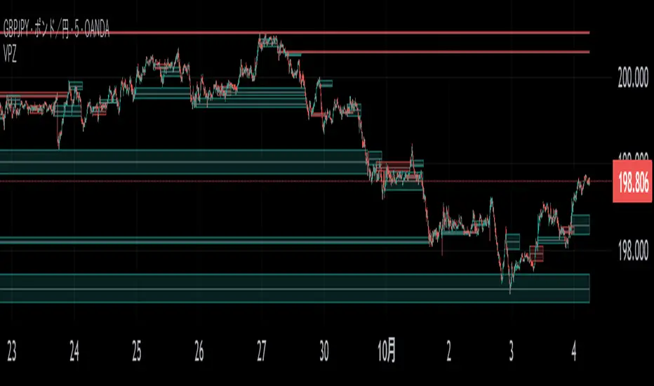 - Draws Zones: It draws a box around the high and low of that high-volume bar and extends it to the right.