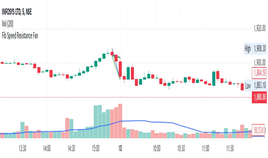 "Fib Speed Resistance Fan," automatically draws Fibonacci Speed Resistance Fan lines based on the first and third candles of the trading session. Here’s a breakdown of its functionality: