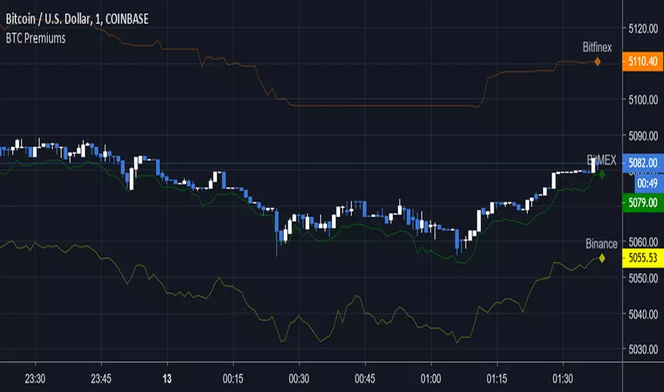 Shows the price of BTC on multiple exchanges, helps to see which is leading in price and if the current price is above or below average.