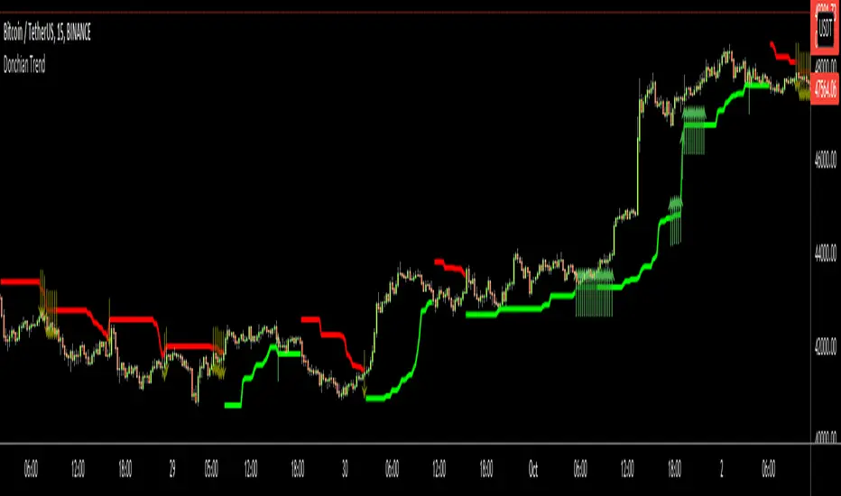 With this indicator I tried to create Trend Lines by using Donchian Channel upper/lower bands. I tried add possible entry levels as well.