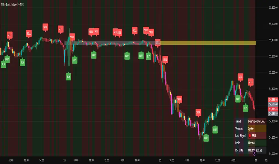 Customizable: Inputs allow tuning the sensitivity of the EMA, Volume, ATR, and RSI to different assets/timeframes.