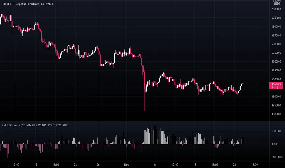 This indicator shows the discount Bybit BTC perp is trading at relative to Coinbase.