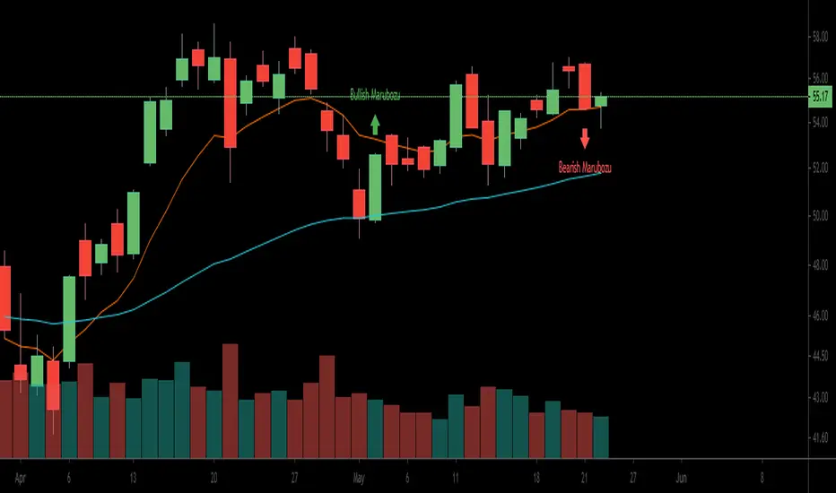 Candlestick Marubozu patterns scanner with multiple settings to fine-tune the scanning.