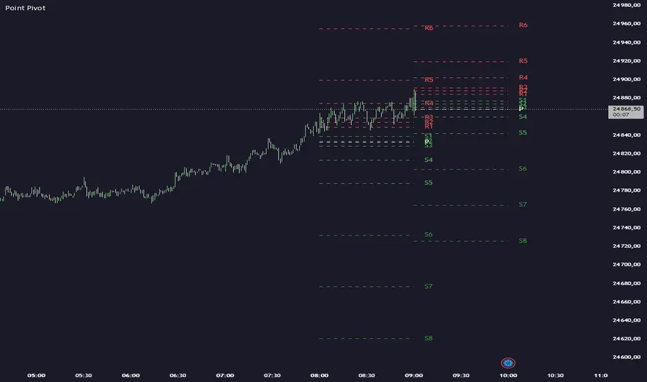 Now, a extrapolation of Camarilla, Fibonnaci and traditionnal pivot point to R8 / S8 is possible