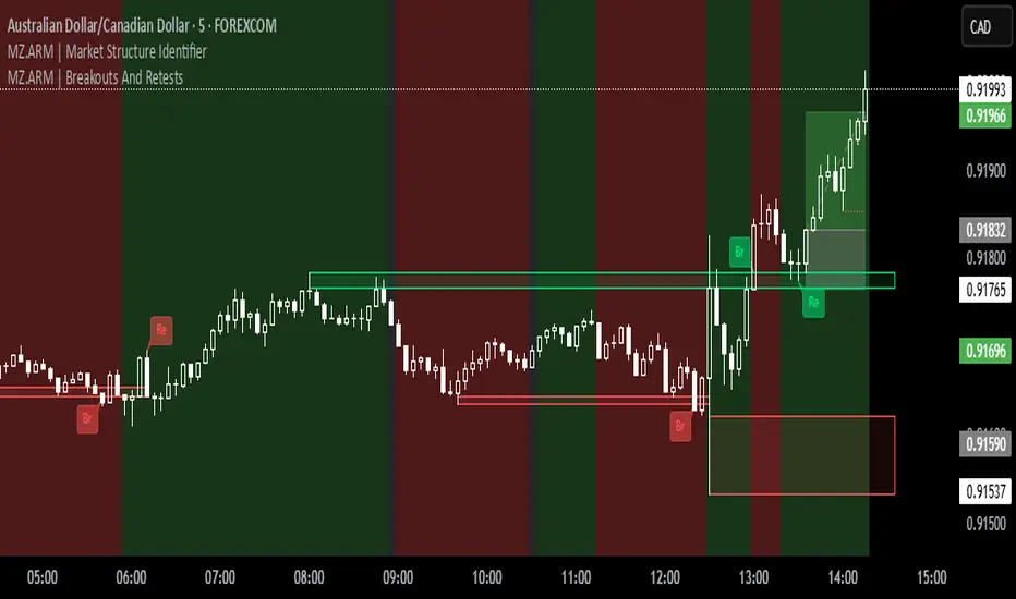 This is a powerful visual tool designed to help traders effortlessly spot ⏩ continuation zones and ⏪ pullbacks on the chart. It automatically identifies key Support 🛡️ and Resistance ⛔ levels, applying a set of sequential conditions to confirm a genuine breakout 🚀 followed by a meaningful retest 🔁.