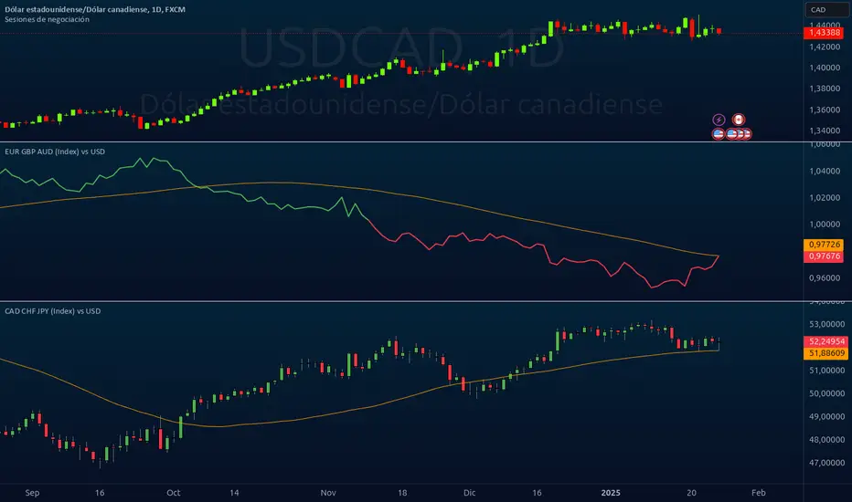 Analyze the combined performance of CAD, CHF, and JPY against the USD with this customized Forex currency index. This tool enables traders to gain a broader perspective of how these three currencies behave relative to the US Dollar by aggregating their movements into a single index. It’s a versatile tool designed for traders seeking actionable insights and trend identification.