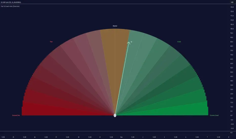 - Fear: Indicates a market scenario where investors are scared, possibly leading to a sell-off or a stagnant market. In such conditions, the indicator helps in identifying potential buying opportunities as assets may be undervalued.