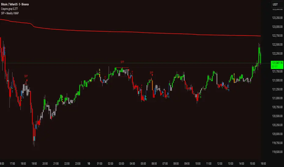 A powerful combination of the Swing Failure Pattern (SFP) detection with Weekly VWAP trend filtering for higher-probability trade setups.