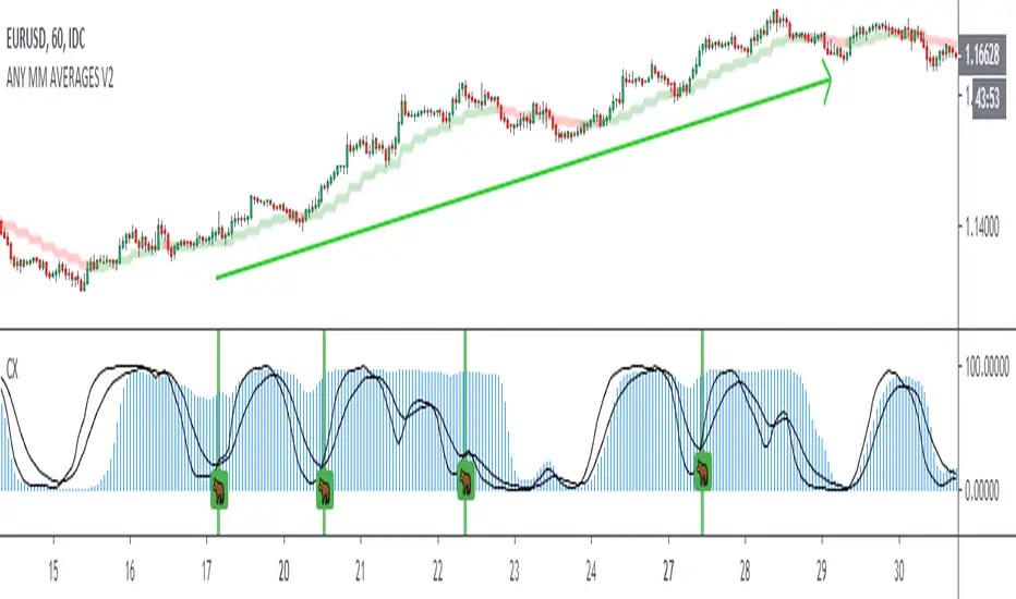 This indicator looks for cracks (de-correlation of 2 indicators), what you have to do is simple, first look at the trend in a higher frame, there are many indicators for this, then look for cracks as wide as possible (you can configure the size in the configuration) and that they are not close to important supports / resistances. This indicator can be very useful for Swing, Coverages, to increase existing positions.The confirmation of the crack occurs when the black lines cross + bar closure.