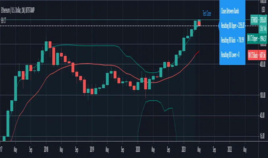 This indicator contains a standard set of Bollinger Bands with the addition of a Test Closing Price calculation function.