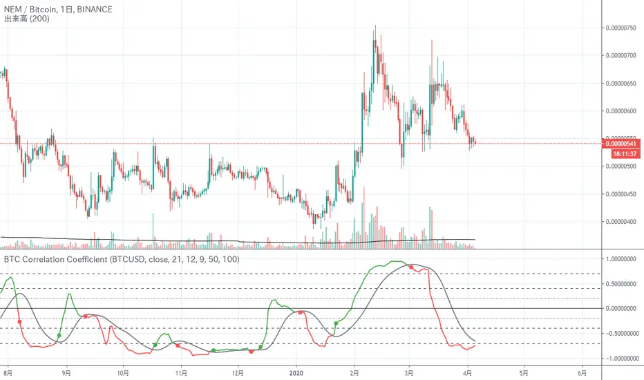 bitfinex:BTCUSDのcloseとの相関係数を計算して表示するだけのインジケーターです。
