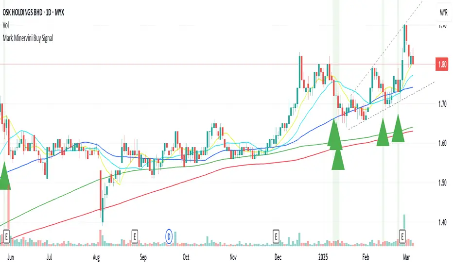 # Mark Minervini Buy Signal IndicatorThis indicator implements Mark Minervini's "Stage 2 Uptrend" buy criteria from his SEPA (Specific Entry Point Analysis) methodology as described in his books "Trade Like a Stock Market Wizard" and "Think & Trade Like a Champion". The script identifies potential buy setups based on Minervini's technical criteria for stocks showing strong momentum characteristics.