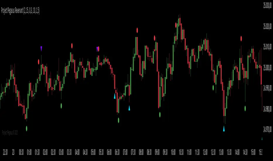 Project Pegasus Revenant is a reversal and liquidity-trap detection system combining a configurable fractal reversal engine with the SweepTrigger liquidity finder. It highlights potential structural turning points and stop-hunt scenarios directly on the chart.