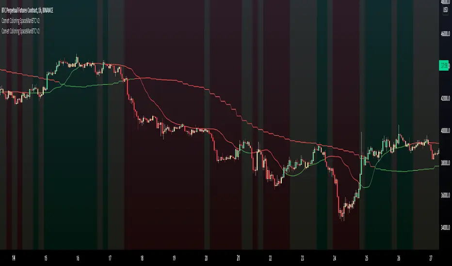 Comet Coloring is a trend coloring tool used to provide additional confluences to trading. Using the tools together on dip entries the color shift can be used to detect a change in trend/show a weakening trend. Green for an uptrend, Red for downtrend and yellow for waning momentum.