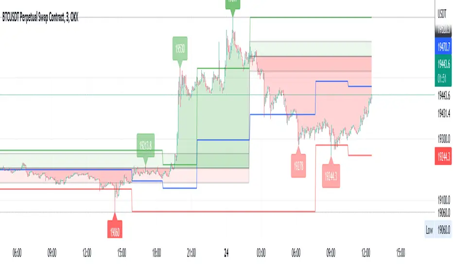 It also display a channel between the last high pivot and the last low pivot , and the blue line is the middle between last high and last low.