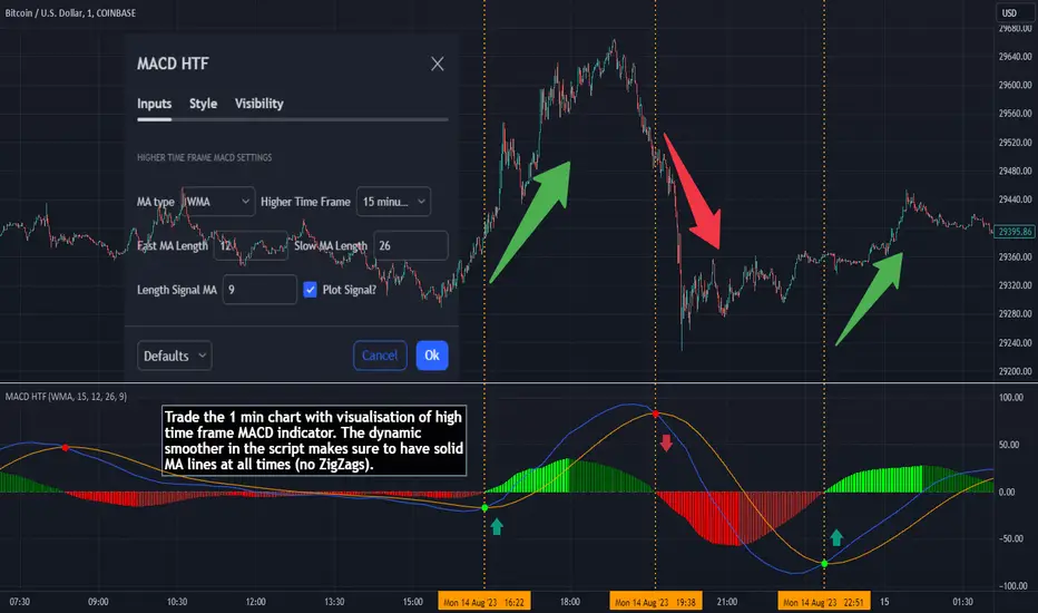 Ever found yourself glued to a 1-minute chart, trying to catch every minor price movement, yet feeling like you're missing the bigger picture? Picture this: a solid MACD line on that chart, dynamically smoothed from a higher timeframe (HTF). This tool offers two significant benefits over other existing HTF MACD indicators: