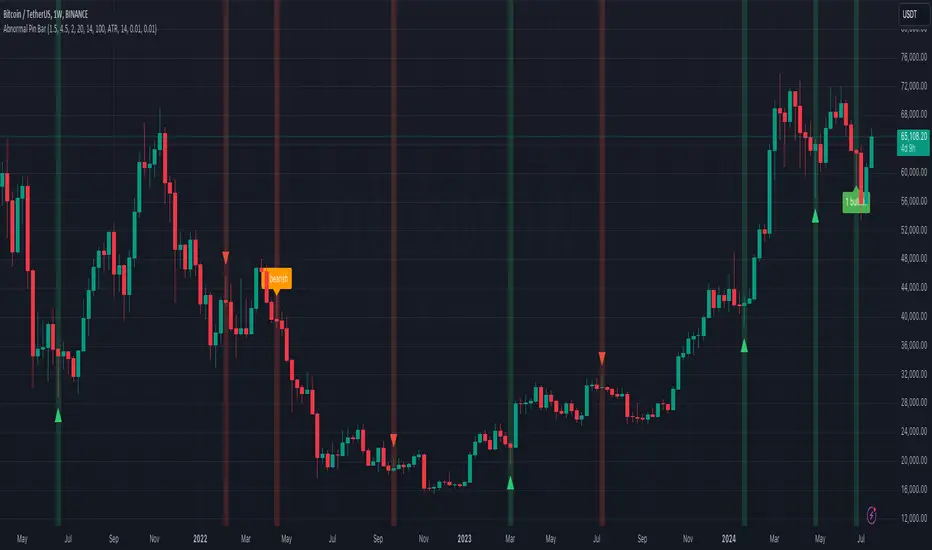 With this indicator, you can set your own abnormal pin bar settings. The indicator will highlight abnormal pin bars according to the settings you specified.