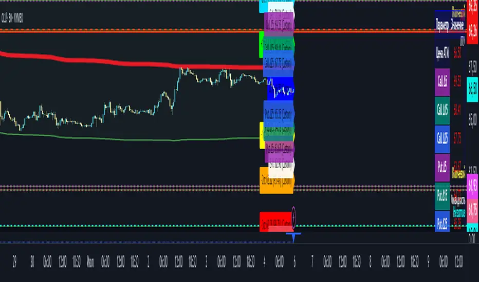 "Greeks" Calculation: The indicator calculates and displays key option Greeks (Delta, Gamma, Theta, Vega), helping to deepen the understanding of an option position's characteristics.