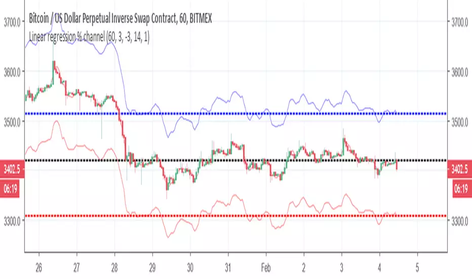 this is good indicator for filtering (if you want your signal to be above or bellow the % channel) or if you want to enter at certain price and exit by the regular TV alerts so it more easy where your target for long or short exist