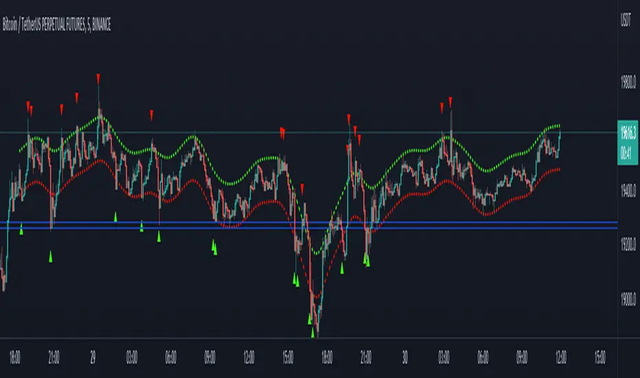 So if price cross up with the bands and after that there is a reversal candle movement, a short position could be taken.