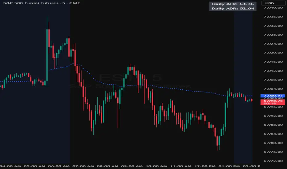 This indicator displays the daily ATR and daily ADR in a customizable table on the chart. You can adjust the table position, text size, text color, and background color. ATR and ADR values are calculated on daily data only and remain stable across all intraday timeframes.