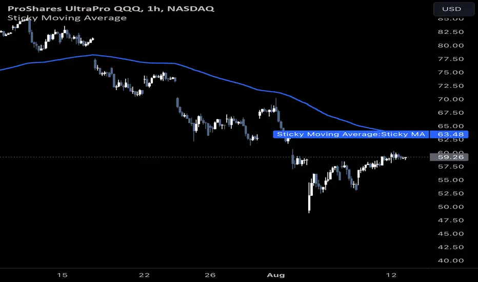 The Sticky Moving Average is a custom indicator designed to provide a unique smoothing effect by combining different moving averages derived from a single base period. This indicator creates a single line on the chart, representing the average of the following three moving averages: