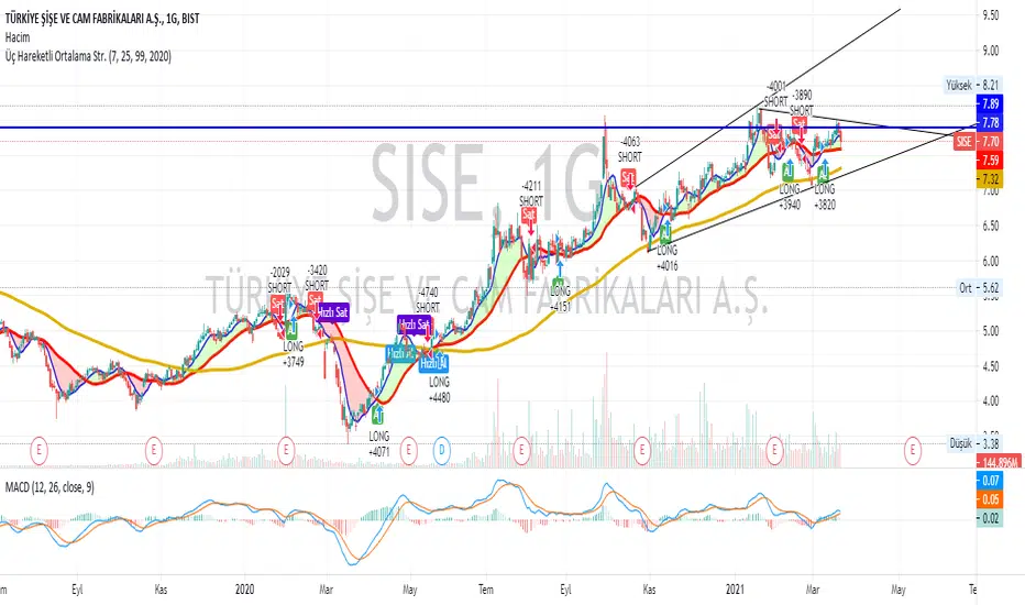 If the short term (Default 7) moving average cuts the medium term (default 25) moving average, BUY. Conversely, it generates the SELL signal. If the long term (Default 99) moving average cuts its short term moving average, Quick SELL. Conversely, it can be interpreted as Fast SELL. You can change the moving average and the number of days as you wish, and you can trade in the short or long term. I hope it was useful.