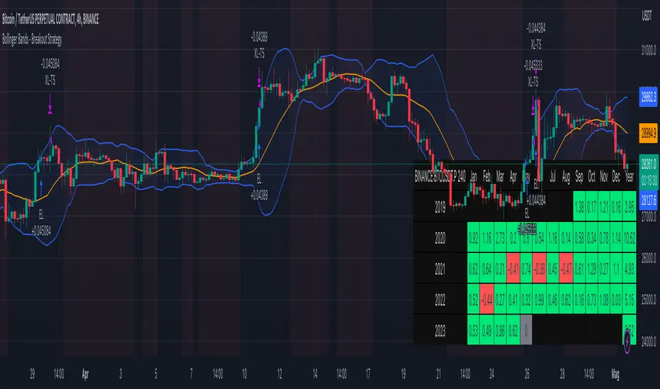 The Bollinger Bands - Breakout Strategy is a trend-following optimized for short-term trading in the crypto market. This strategy employs the Bollinger Bands, a widely recognized technical indicator, as its primary instrument for pinpointing potential trades. It is capable of executing both long and short positions, depending on whether the market is in a spot or futures, and is particularly effective in trending markets.
