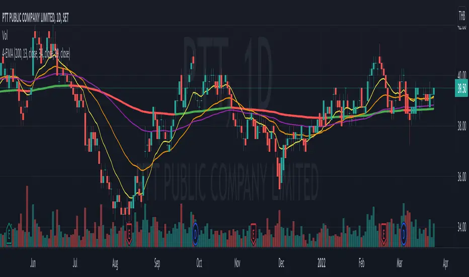 4 EMAs indicators, I use these for daily time frame. Please feel free to explore. Comments are invited.