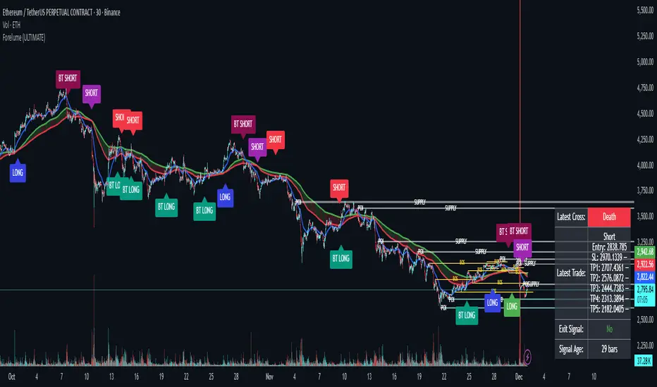 Forelume ULTIMATE is the flagship, feature-rich TradingView trade-assistant that combines trend awareness, confirmation-based signals, structured trade planning, and premium-grade chart UI, while keeping everything configurable and clean.