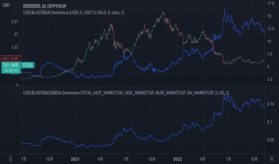 This update added DAI stablecoin's dominance to better reflect stablecoin dominance. (will also include BUSD dominance once index is ready in tradingview)Xiaolai Chen