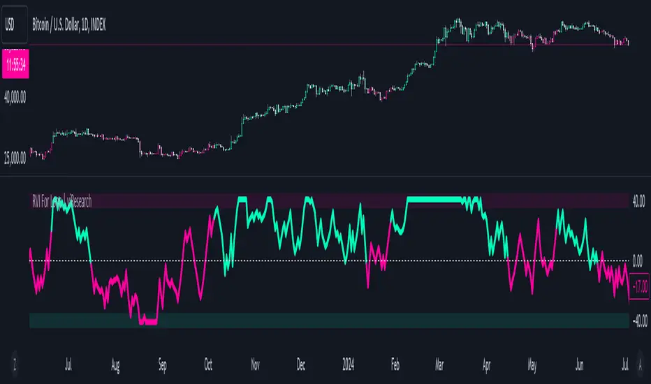 The "RVI For Loop | viResearch" indicator provides a powerful tool for analyzing market momentum by combining the Relative Vigor Index with a customizable for-loop scoring system. Incorporating this script into a trading strategy can improve a trader’s ability to detect trend reversals and confirm trend strength, thereby enhancing market timing and reducing the risk of false signals. The "RVI For Loop" offers a flexible and reliable solution for traders seeking to sharpen their technical analysis in both trending and ranging markets.