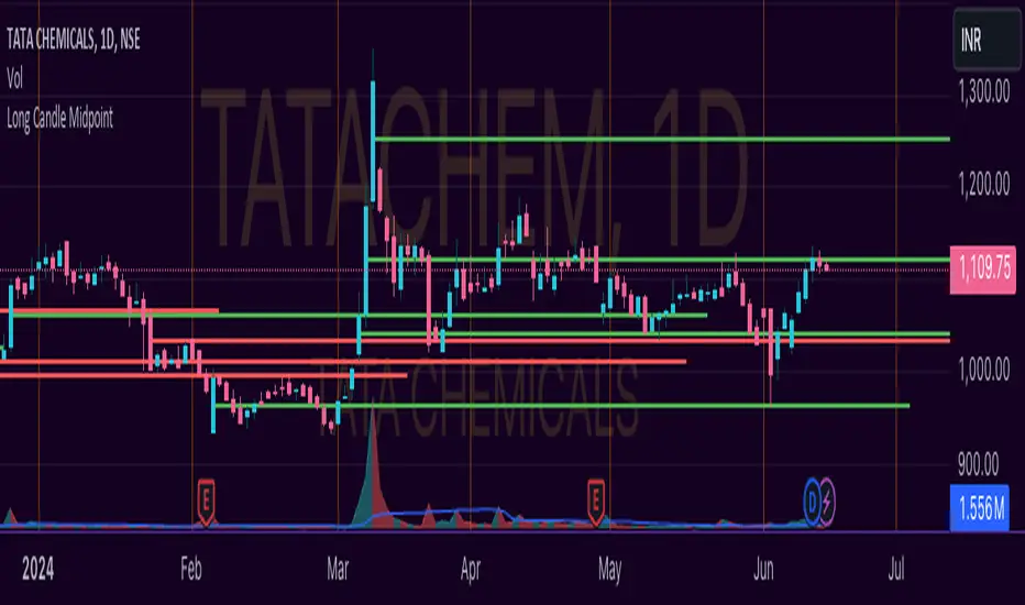 The Pine Script code provided below is designed to identify the midpoint of a long candle, which can be a crucial level for traders to watch.