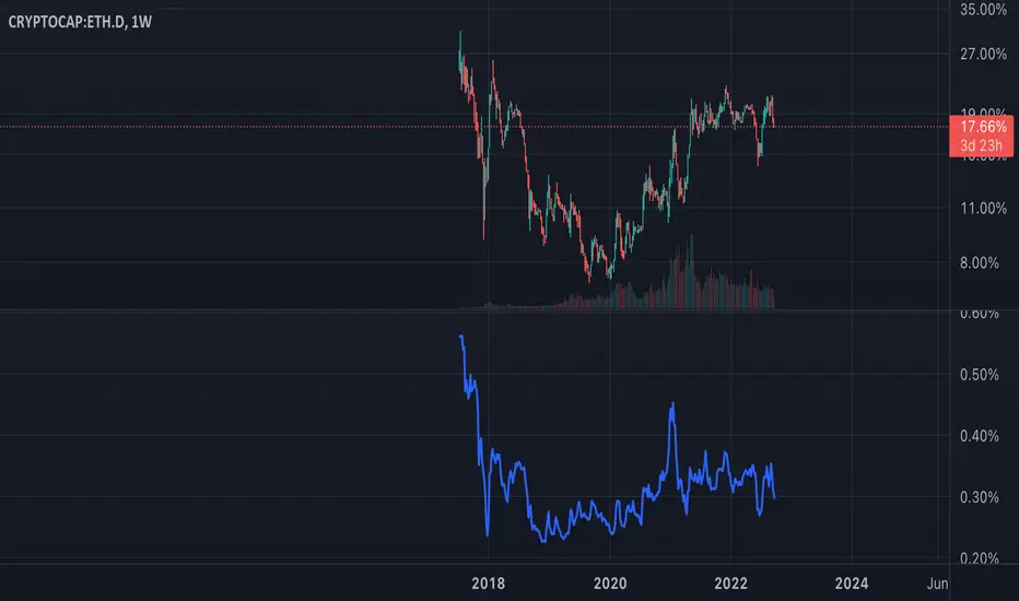 The indicator shows when ETH is undervalued or overvalued with regard to other alts. BTC capitalization is not taken into account.