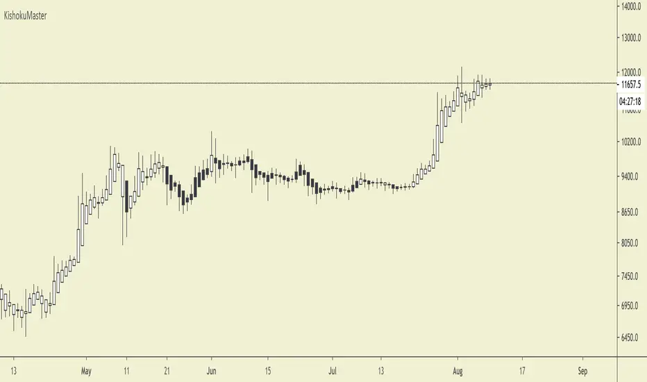 By default, KishokuMaster will colour your candles in black and white. White candles indicate an uptrend in an asset and the candles will not change colour until the trend has reversed. Black candles indicate a downtrend, they will remain black until a trend reversal occurs.