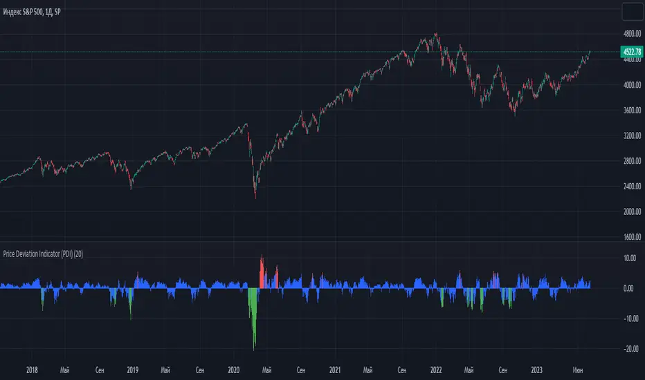 The "Price Deviation Indicator" (PDI) can be useful in analyzing price movements in the market. It allows you to calculate the relative difference between the current price and the average price, allowing you to identify market saturation and change in trend. The indicator can be used in technical analysis to make decisions about buying or selling assets on the exchange. It can also be useful for traders of different levels of experience, as its settings can be adapted depending on the user's needs and requirements. Overall, this indicator is one of the tools that can help in analyzing price and volumes to determine possible investment prospects in assets.