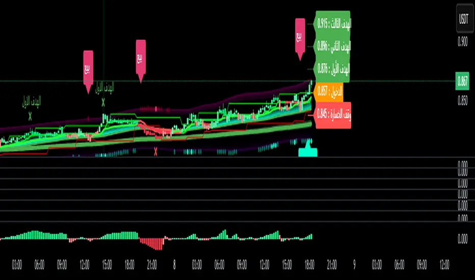 This indicator is developed in Pine Script v6 on the TradingView platform, designed to be a powerful analytical tool combining dynamic moving averages, trend speed, and transmission statistics (wave analysis).