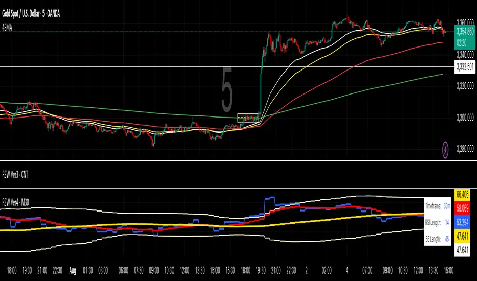 The 4 EMA Indicator (Exponential Moving Average) uses four exponential moving averages with different periods to identify market trends across multiple timeframes. It helps traders recognize short-term to long-term momentum and make informed entry or exit decisions. When the EMAs are aligned from shortest to longest and sloping upward, it indicates a bullish trend. Conversely, when they are ordered from longest to shortest and sloping downward, it signals a bearish trend. The 4 EMA is especially useful in trend-following strategies for spotting strong directional movements.