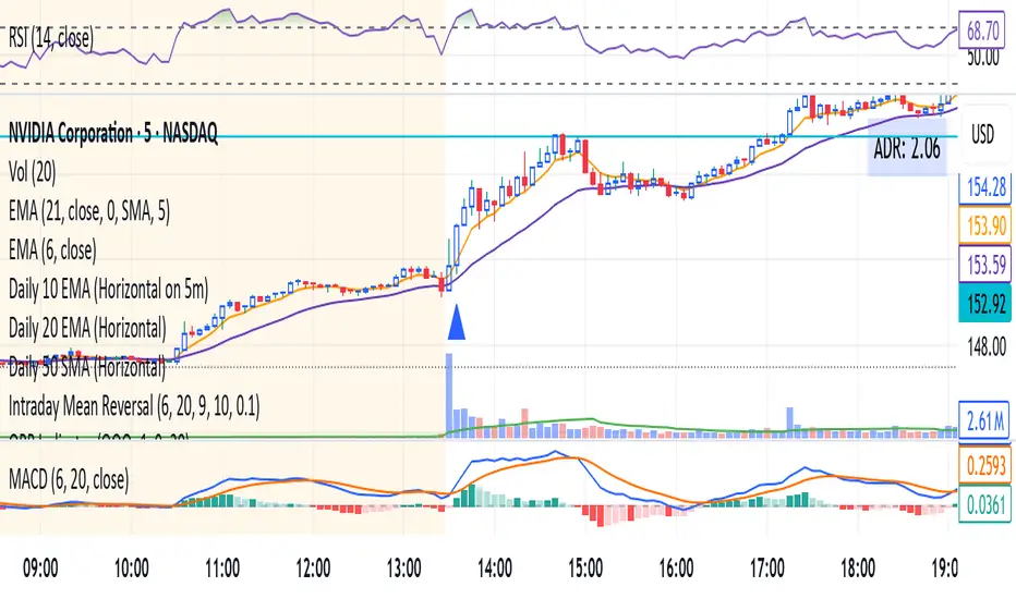 The ORB (Opening Range Breakout) indicator is a momentum-based tool designed to highlight potential long trade opportunities during the first two candles of the regular trading session. It’s built to detect early strength by filtering for clean bullish price action and relative outperformance against a benchmark index.