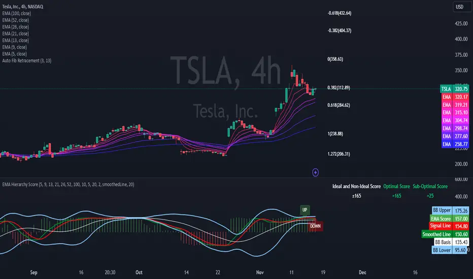 * The EMA Hierarchy Score interprets the underlying EMA structure, offering additional context on whether current trends are aligned with optimal or non-optimal EMA configurations.