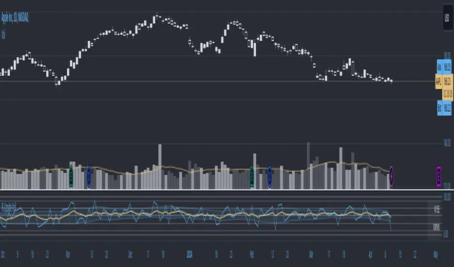 - Plot Day, Week, and Month volume and/or chart timeframe period volume.
