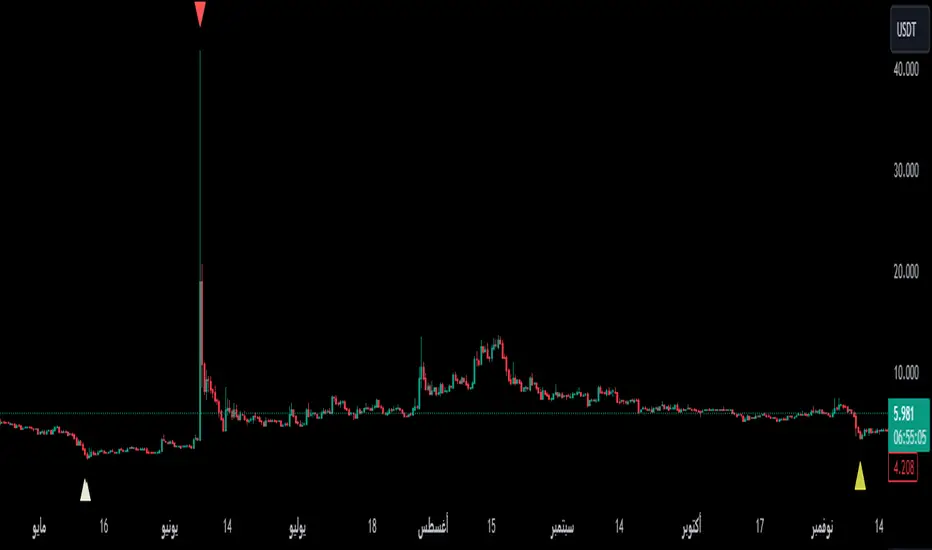 Exit Signals: For an exit condition, which indicates overbought conditions that may indicate an impending price correction, red downward-pointing triangles are drawn above the price bars. This serves as a clear visual warning to consider exiting positions or proceed with caution.