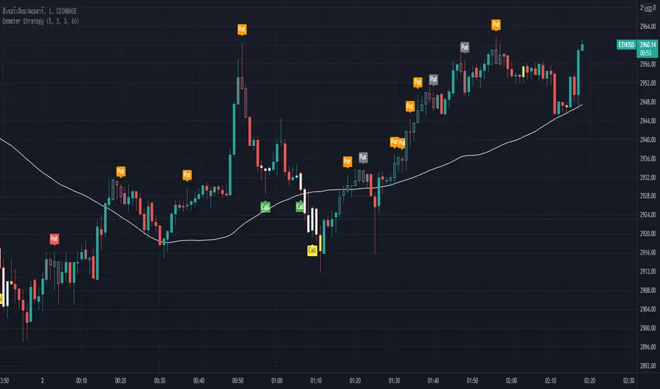 Demeter Strategy is Stochastic oscillator (5 3 3) and SMA (60) system with small modification.