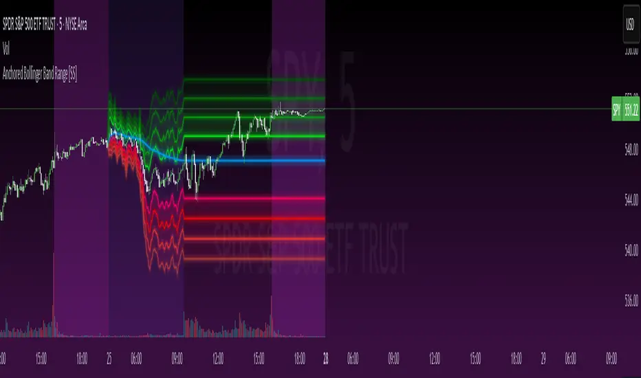 - Anchors to the last high and last low of the period range to add up to 4 standard deviations to the upside and downside, giving you 4 high and low targets.