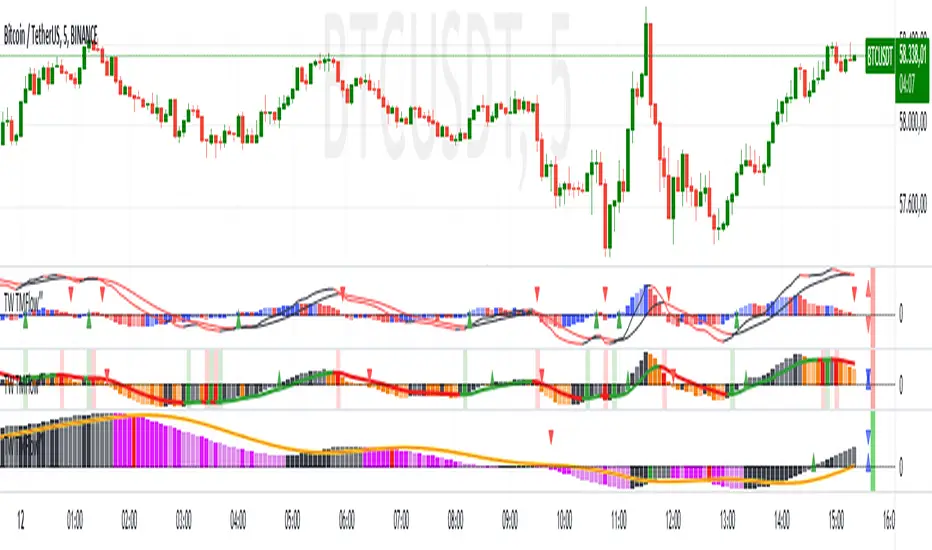 Converts MACD indicator into a powerfull long and short term trend momentum indicator. This is a 3in1 indicator, you have a (1) MACD or a (2) Long or (3) Short Termo Trend TMFlow indicator.