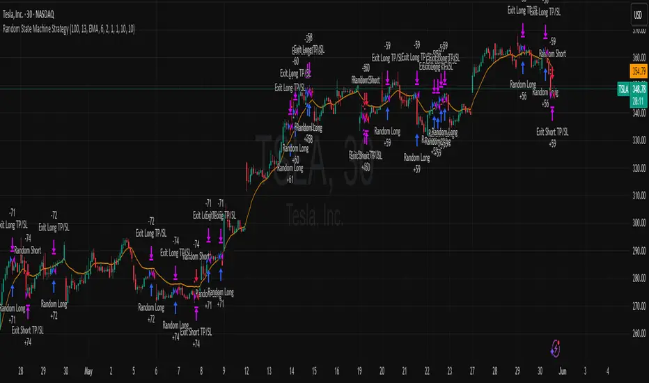This strategy showcases a randomized entry model driven by a finite state machine, integrated with user-defined exit controls and a full-featured moving average filter.