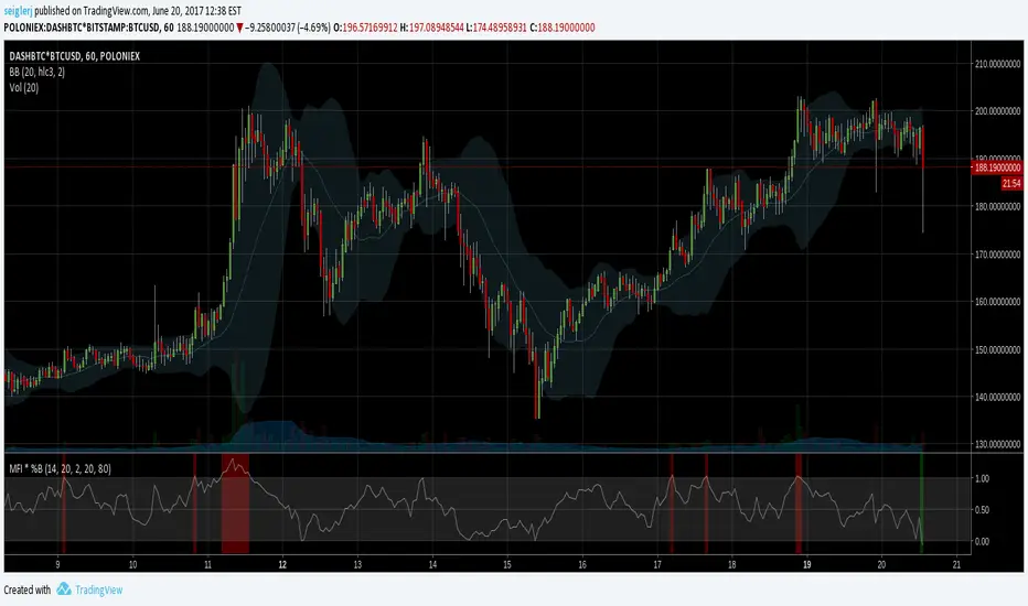 Change the combined signal to a min/max formula that only exceeds the bounds when both MFI and %B do. This reduces erroneous signals and more closely matches published MFI/%B strategies.開源腳本