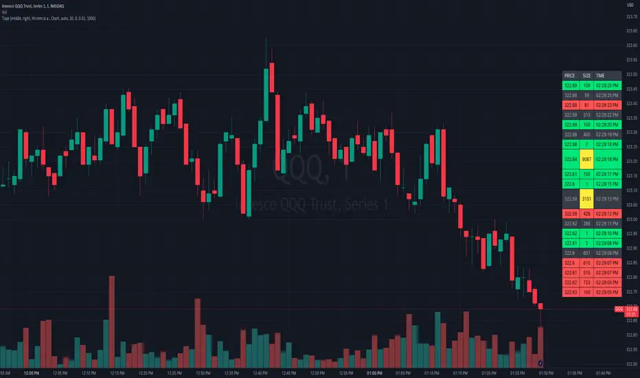 This indicator is a synthesized "Tape" (aka. Time and Sales) from real time market data. It's specifically designed to be performant, expediting trading insights and decisions.